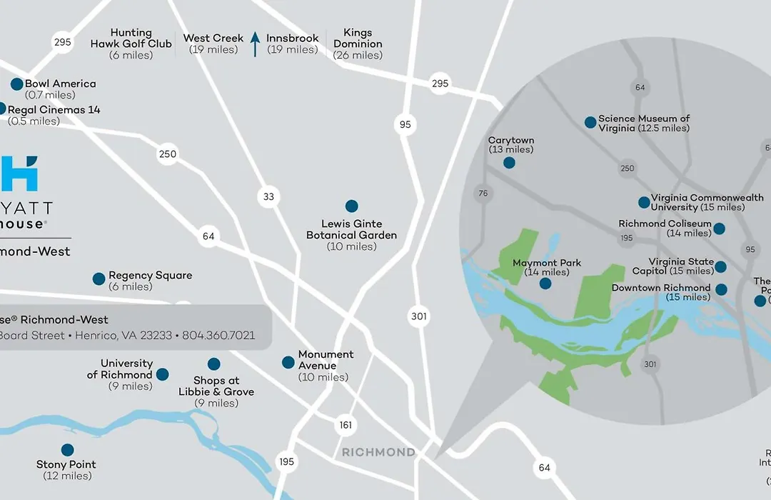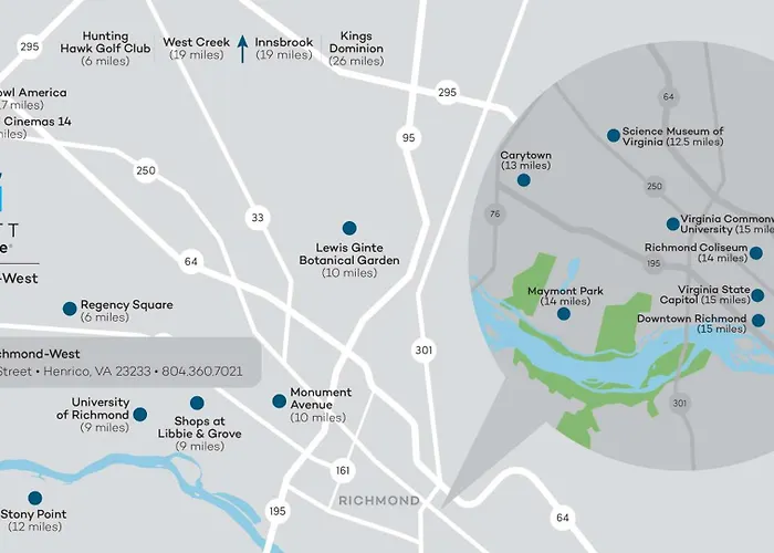 L'hotel 3 étoiles sans fumée est à environ 3 km de Deep Run Baptist et à environ 2 km du Children's Museum of Richmond. Hyatt House Richmond se trouve à côté de Short Pump Stadium 14, et à 86 km de Charlottesville. Les attractions de divertissement à proximité de Short Pump incluent Innsbrook After Hours, qui est à 10 minutes en voiture. Il faut 41 minutes en voiture pour accéder à l'aéroport international de Richmond, qui est à 40 km de cet hébergement.